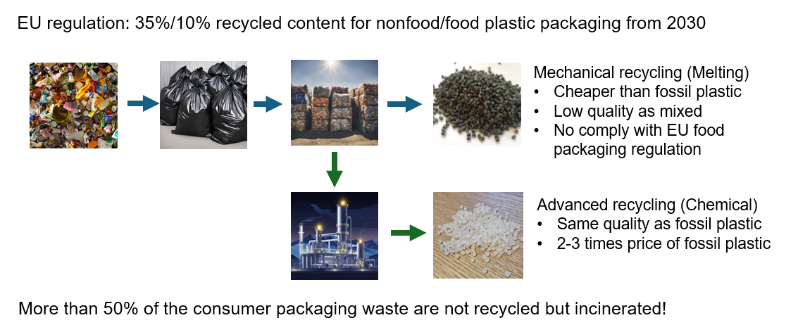 This motivated us to propose the innovative solution with proprietary advanced mechanical recycling technology that turns low quality consumer packaging waste into high quality engineering plastics: